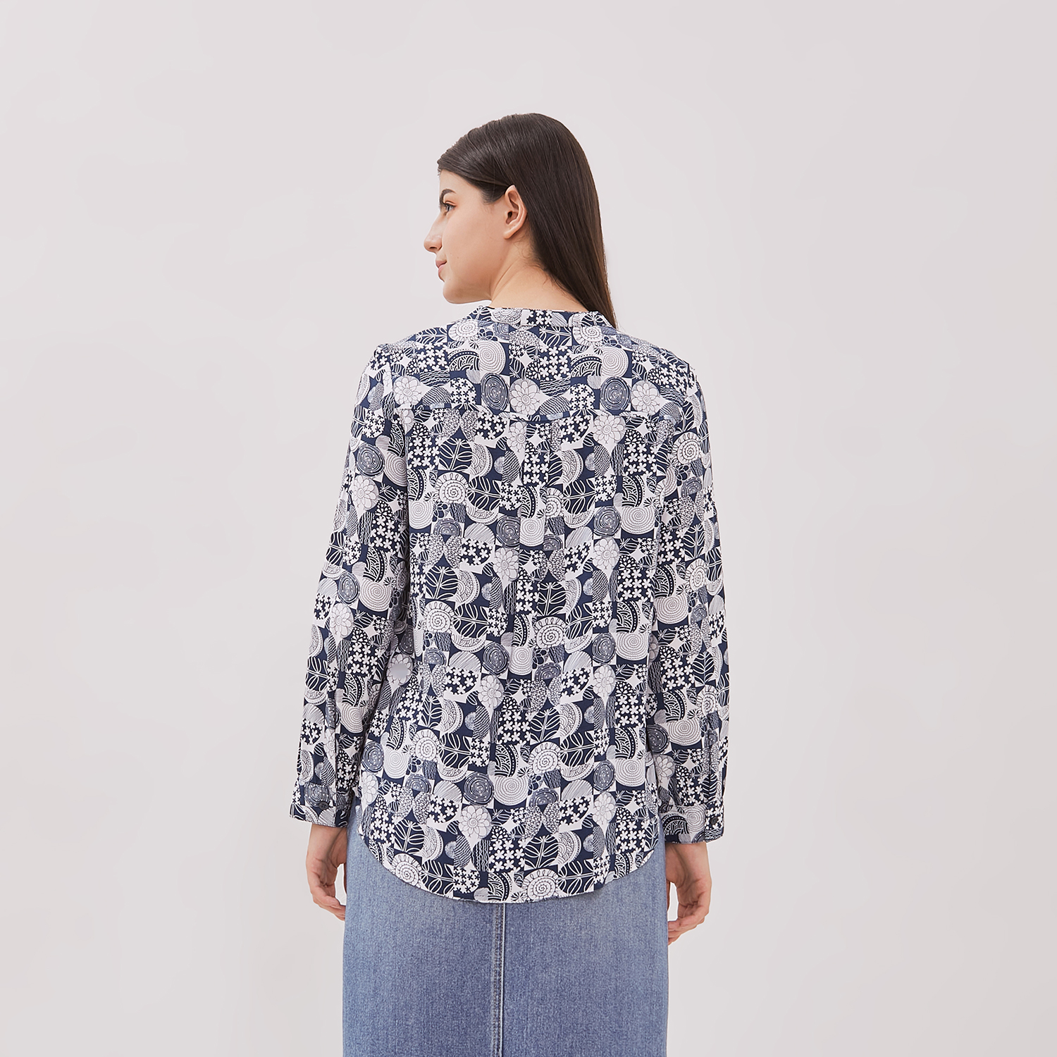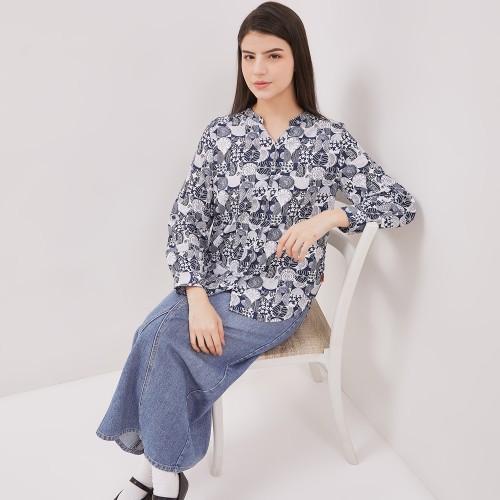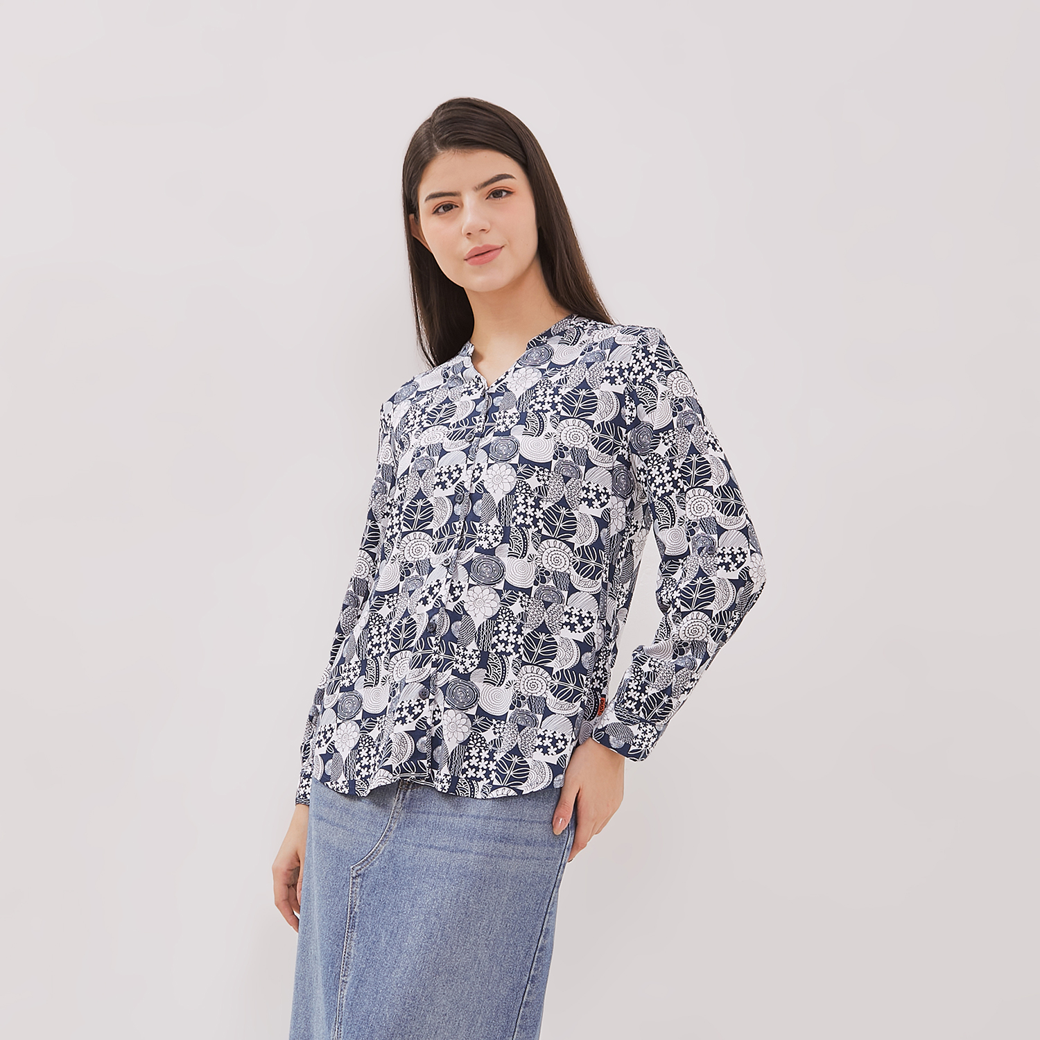DUST Blouse Miswa Abstrak Biru Comfease adalah blouse wanita abstrak lengan panjang memiliki karakteristik material yang nyaman dan lembut sehingga cocok digunakan untuk daily outfit.