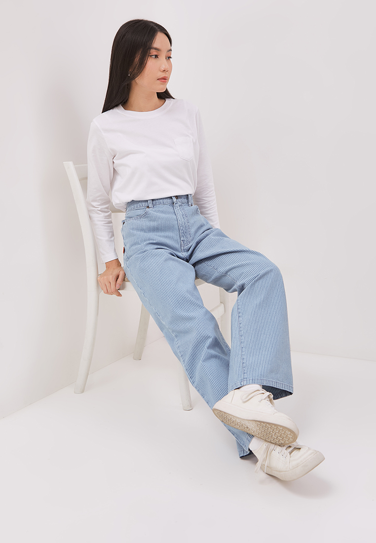 DUST Celana Baggy High Loose Jeans Lunara Light Blue adalah celana jeans wanita model Baggy High Loose. Terdapat dua kantong dibagian depan dan belakang memiliki material yang nyaman dan lembut sehingga nyaman digunakan untuk daily outfit.