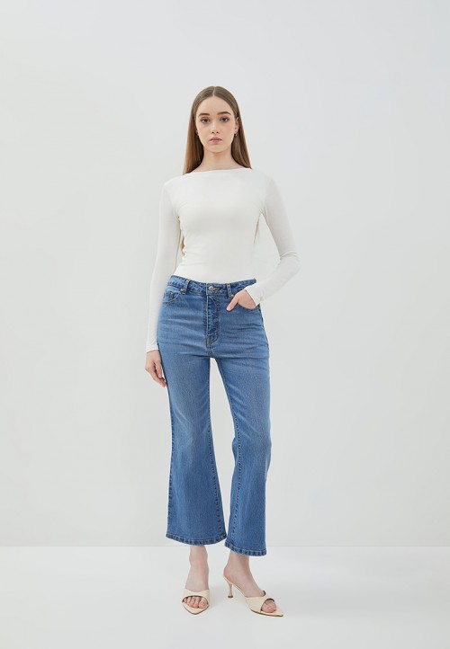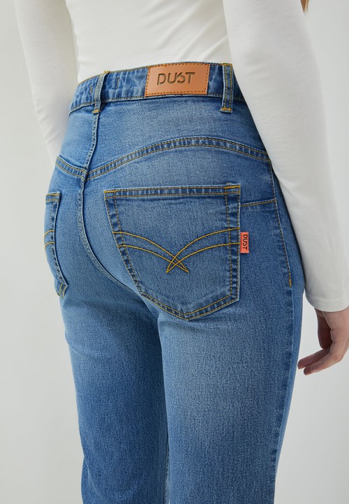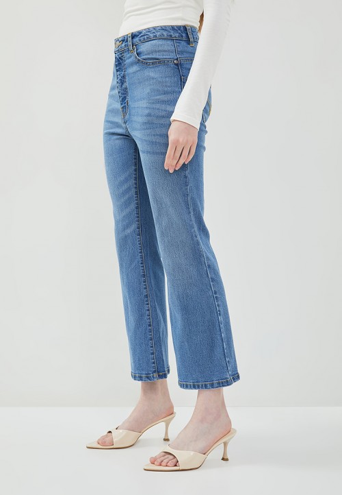 DUST Celana Cropped Cutbray Jeans Arunala Medium Light Blue Comfease adalah celana jeans wanita dengan model crop cutbray, memiliki karakteristik material yang nyaman dan lembut.