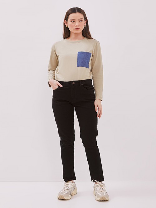 DUST Celana High Rise Skinny Jeans Sandita All Black Comfease adalah celana jeans wanita memiliki material collection terbaru DUST dengan karakteristik material yang nyaman dan lembut.