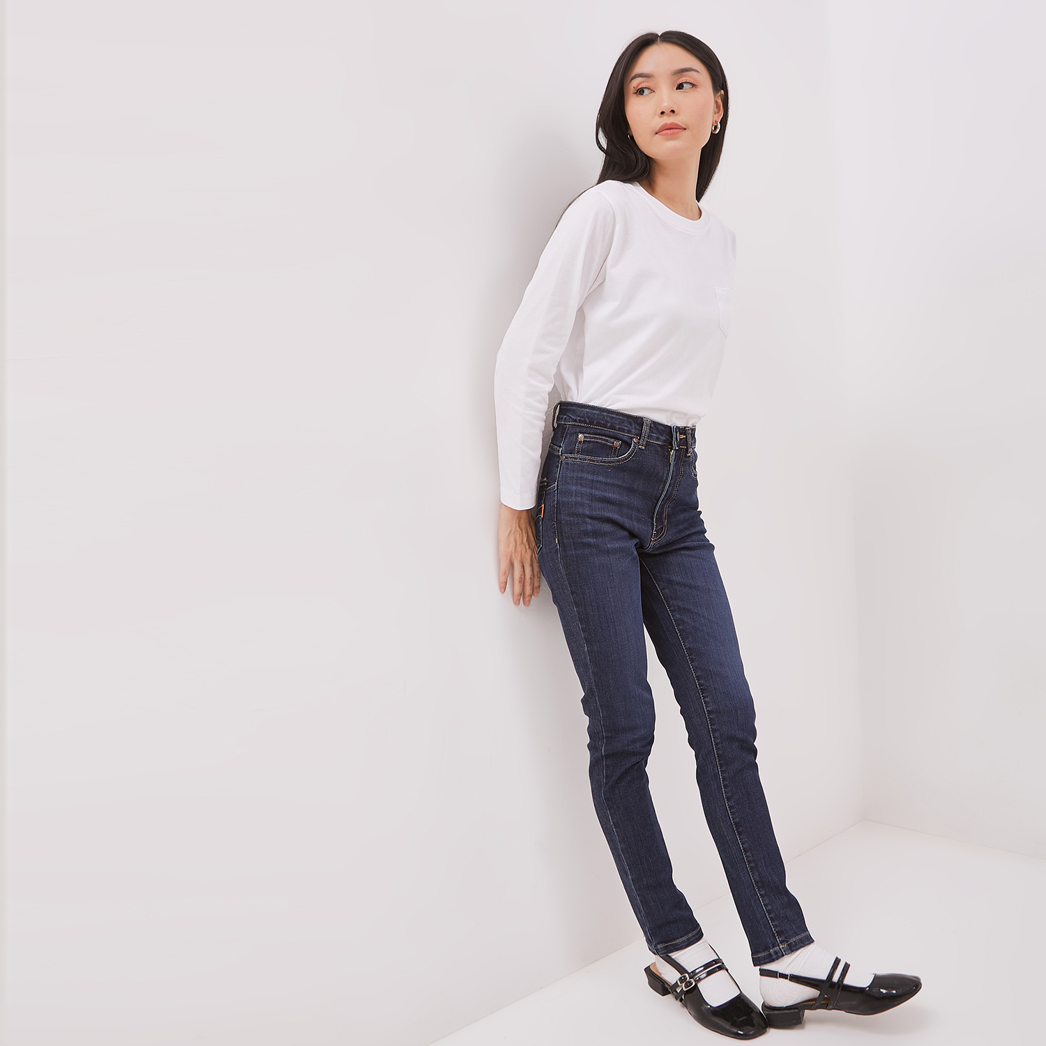 DUST Celana High Rise Skinny Jeans Sandita Dark Blue adalah celana skinny jeans wanita memiliki material collection terbaru DUST dengan karakteristik material yang nyaman dan lembut.
