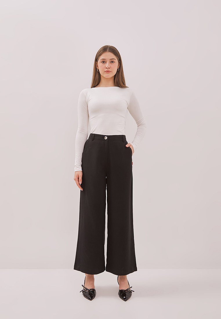 DUST Celana Kulot Asita Hitam Comfease adalah celana kulot wanita dengan model reguler. Terdapat dua kantong dibagian depan memiliki material yang nyaman dan lembut sehingga nyaman digunakan untuk daily outfit.
