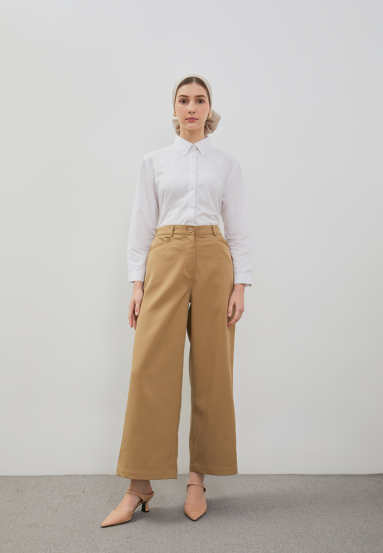 DUST Celana Kulot Narita Khaky adalah celana kulot wanita dengan model reguler. Terdapat dua kantong dibagian depan memiliki material yang nyaman dan lembut sehingga nyaman digunakan untuk daily outfit.