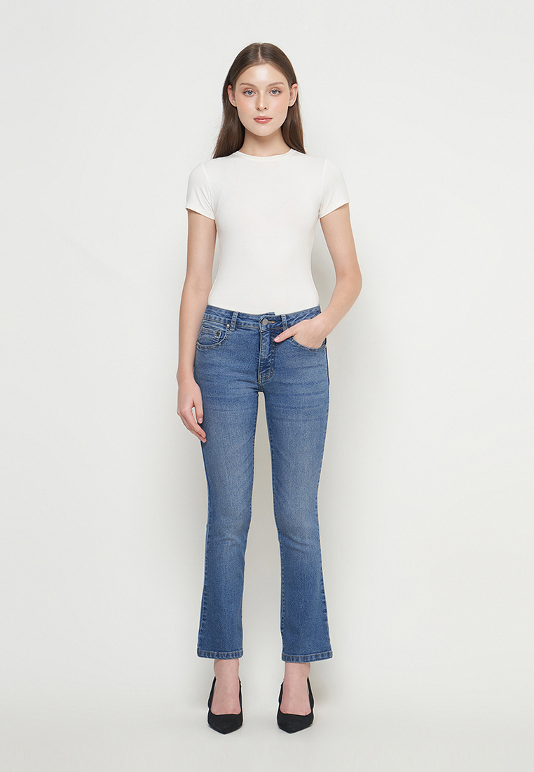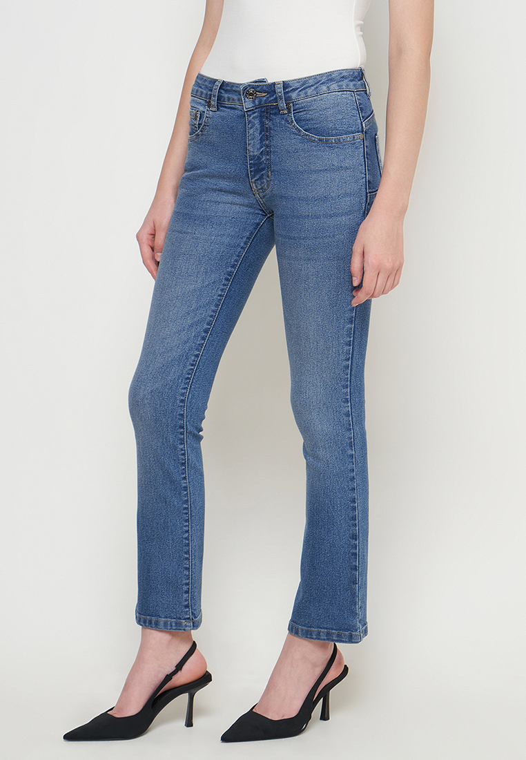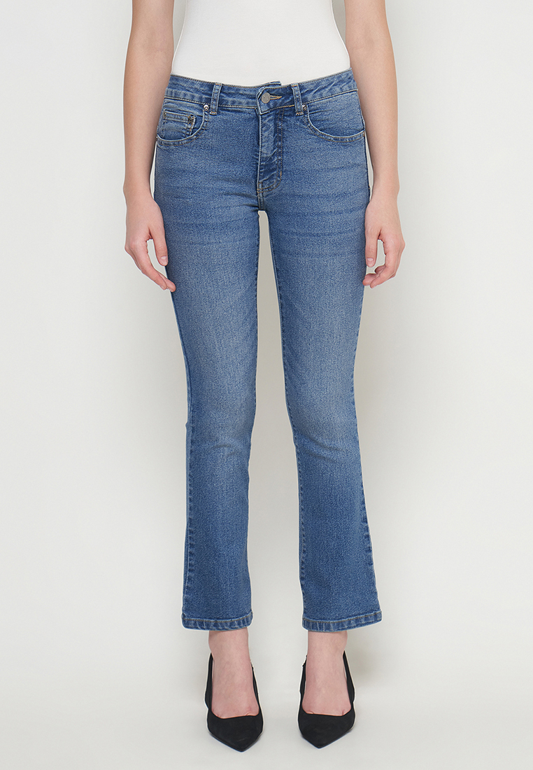 DUST Celana Mid Rise Bootcut Jeans Niara Blue adalah celana bootcut jeans wanita dengan model reguler Fit.