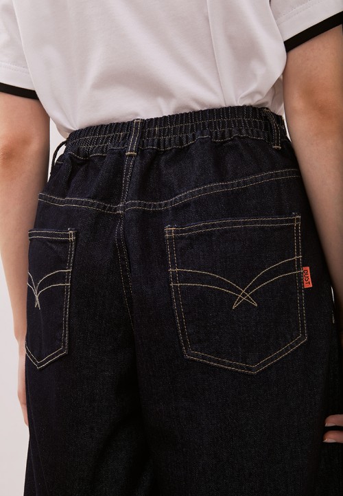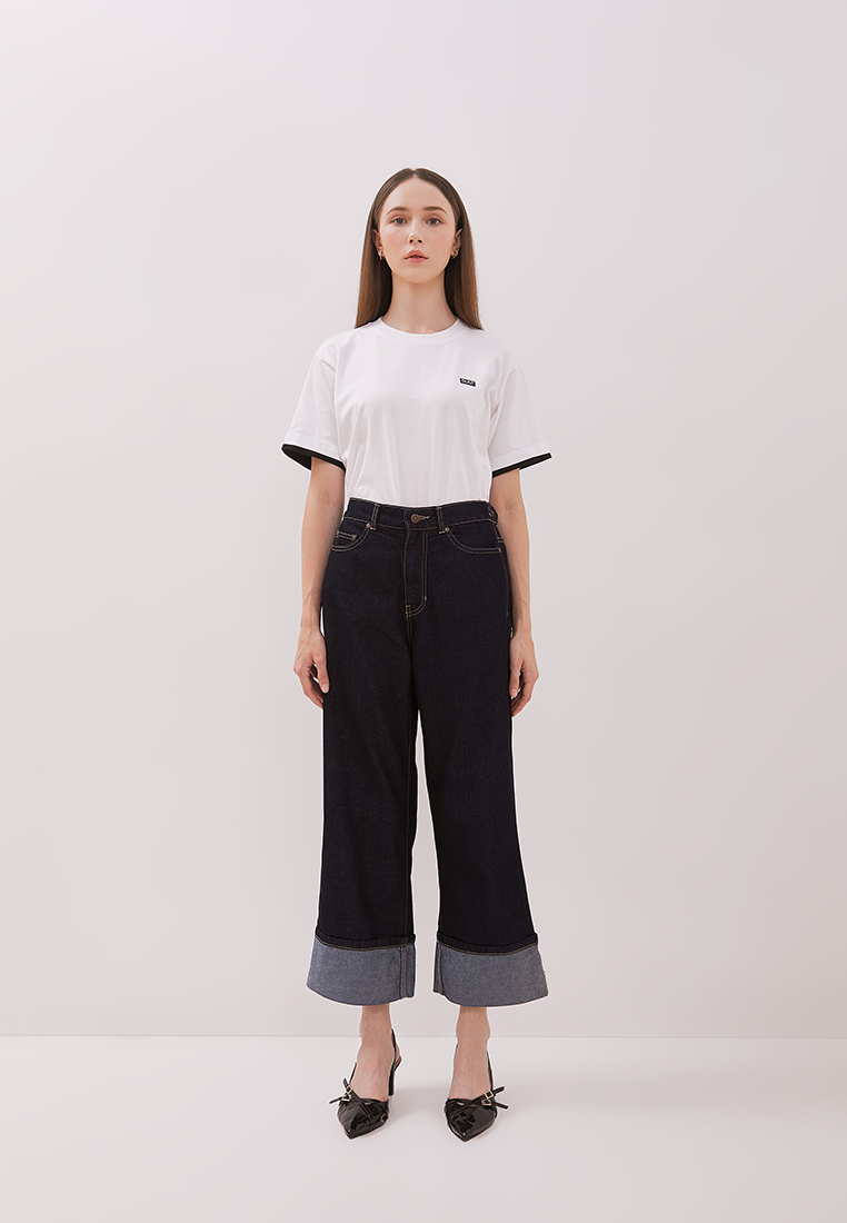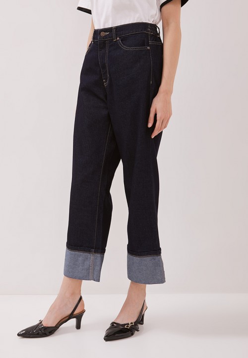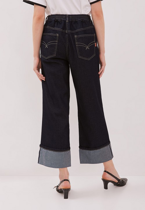 DUST Celana Roll Up Jeans Anara Dark Blue Comfease adalah celana roll jeans wanita dengan model reguler fit.