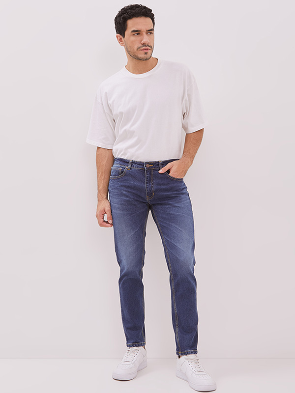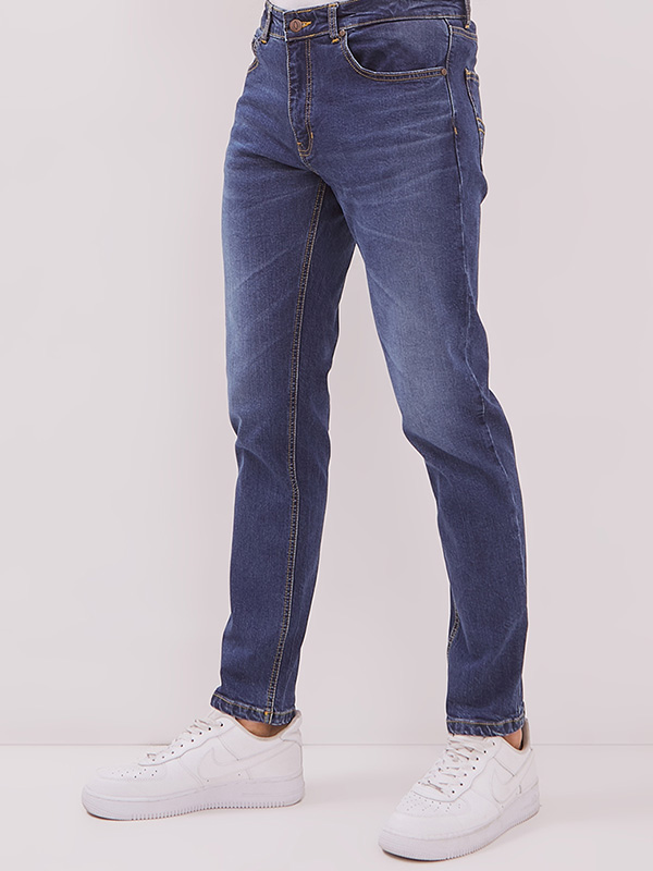 DUST Celana Slim Jeans Shankara Medium Dark Blue Comfease adalah produk DUST MEN dengan model slim jeans pria berwarna medium dark blue.