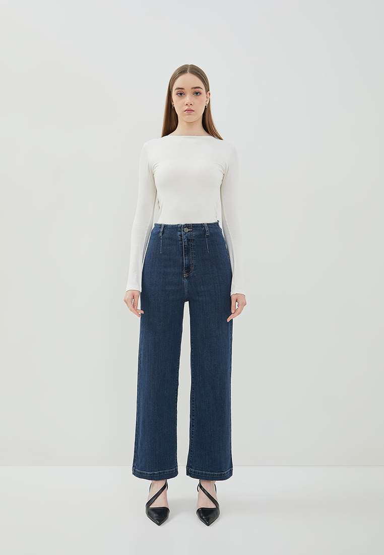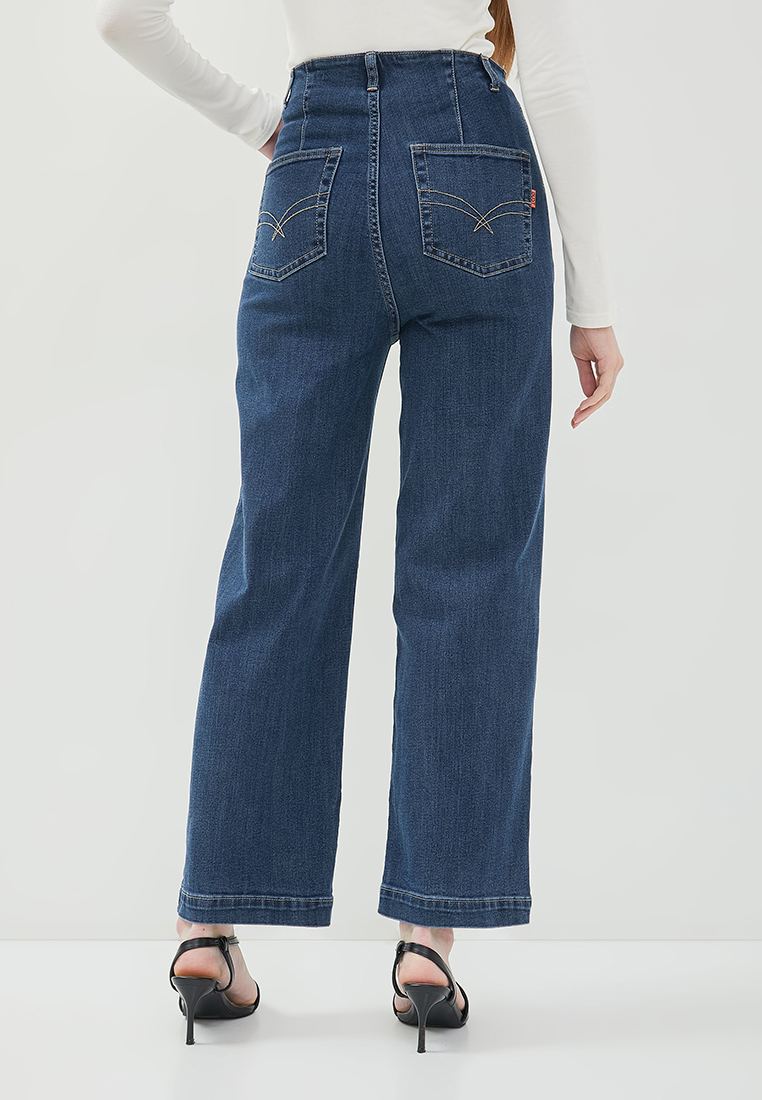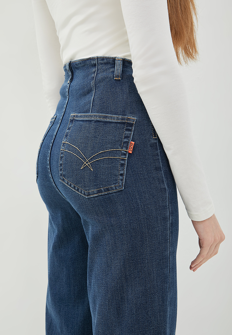 DUST Celana Waistless Baggy Wide Leg Jeans Namara Medium Dark Blue adalah celana jeans wanita model Waistless Baggy Wide Leg. Terdapat dua kantong dibagian depan dan belakang memiliki material yang nyaman dan lembut sehingga nyaman digunakan untuk daily outfit.
