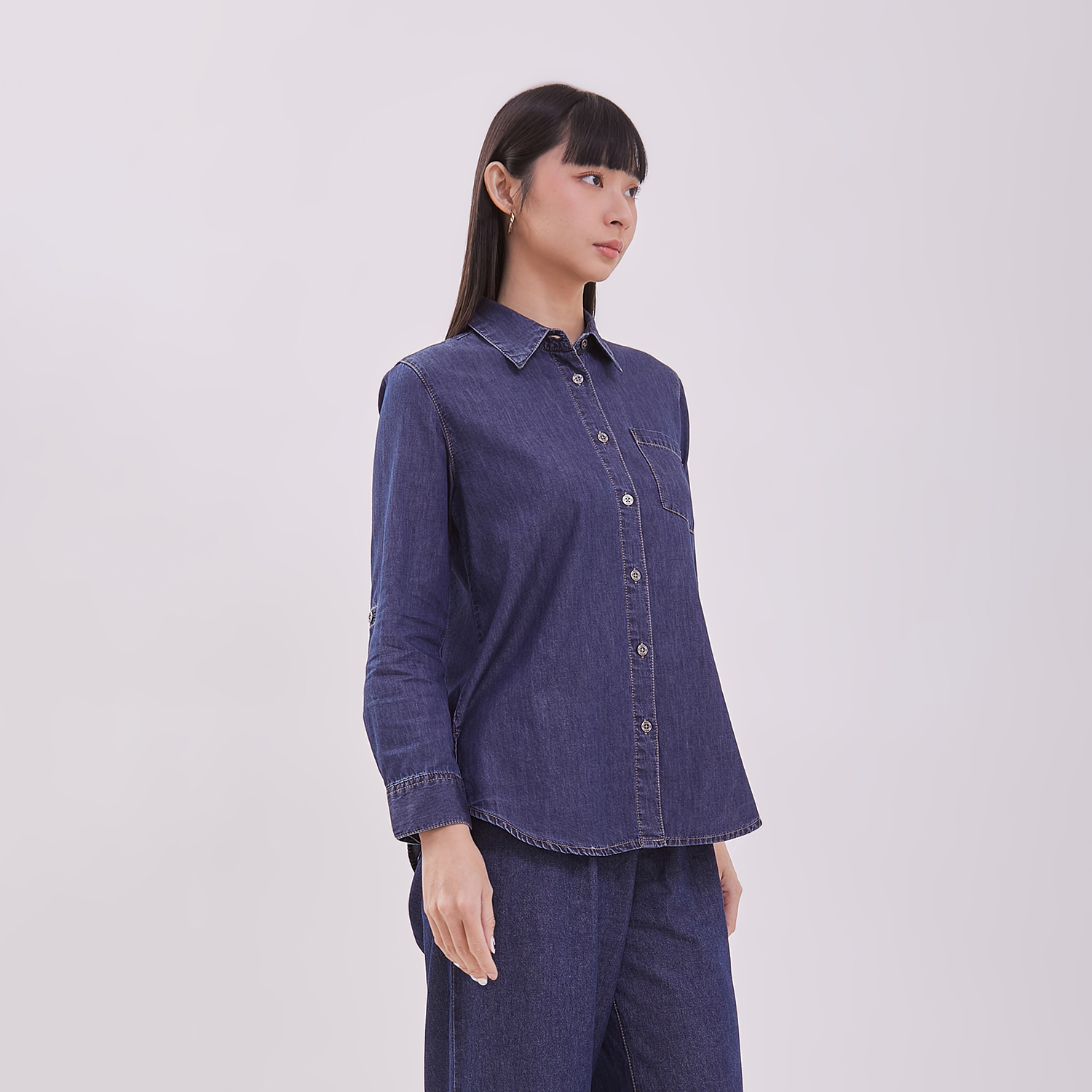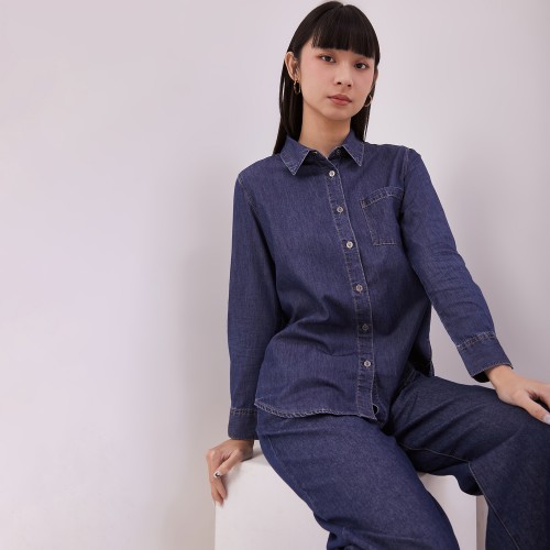 DUST Kemeja Denim Senja Medium Dark Blue adalah kemeja denim wanita lengan panjang bewarna medium dark blue, terdapat kancing dan kantong dibagian depan memiliki karakteristik material yang nyaman dan lembut sehingga cocok digunakan untuk daily outfit.