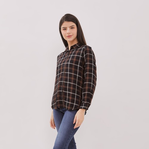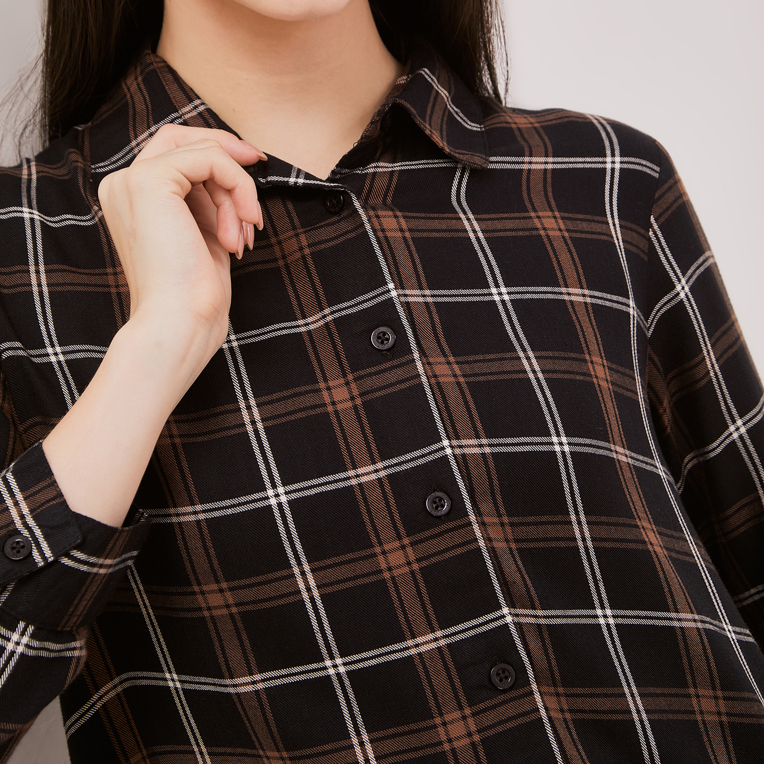 DUST Kemeja Kotak Rumika Hitam Comfease adalah kemeja kotak wanita lengan panjang memiliki karakteristik material yang nyaman dan lembut sehingga cocok digunakan untuk daily outfit.