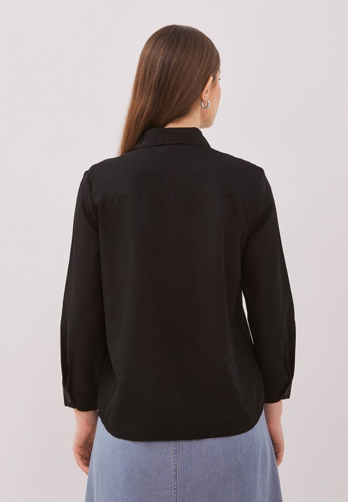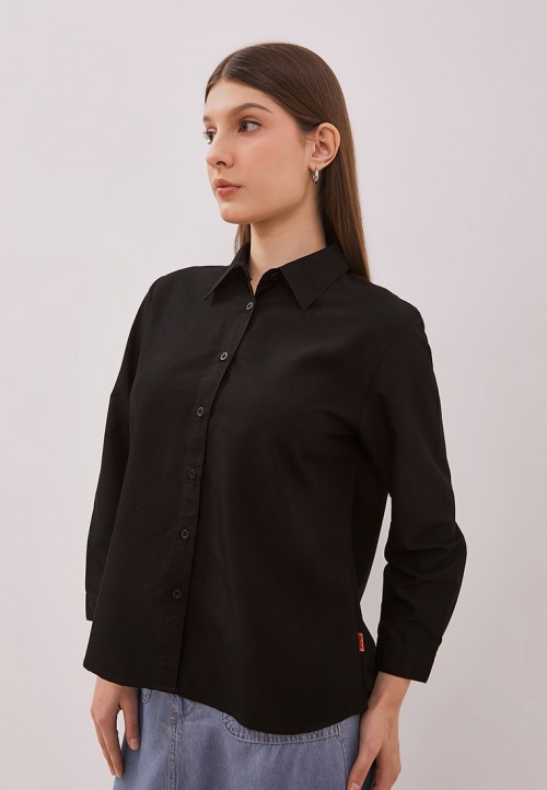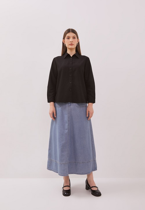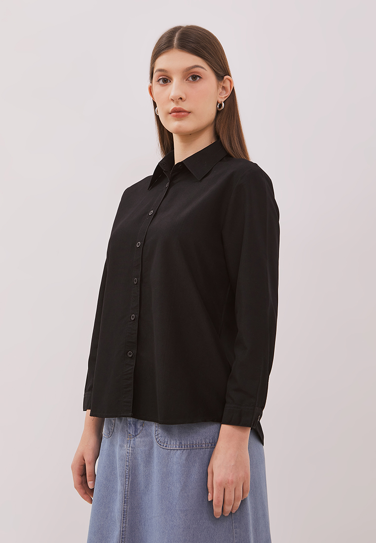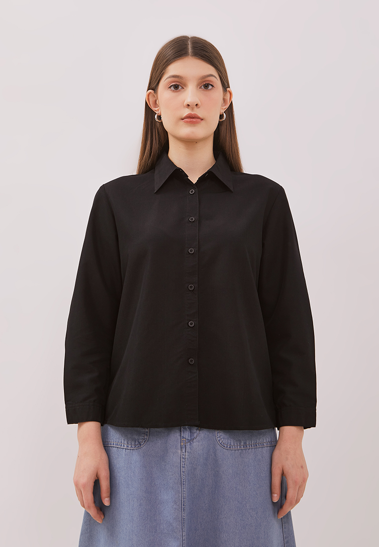 DUST Kemeja Pritha Hitam Comfease adalah kemeja polos wanita lengan panjang memiliki karakteristik material yang nyaman dan lembut sehingga cocok digunakan untuk daily outfit.