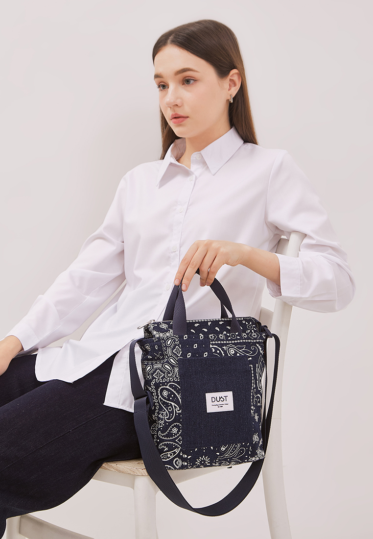 DUST Mini Bag Aspen Dark Blue adalah mini bag wanita dengan detail resleting dan sablon dibagian depan.