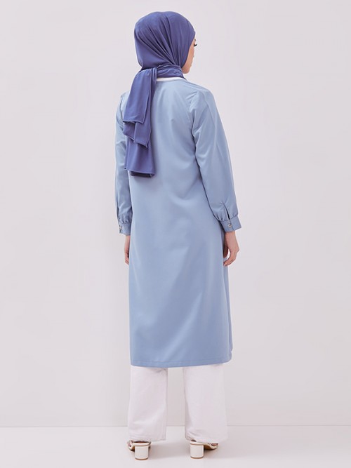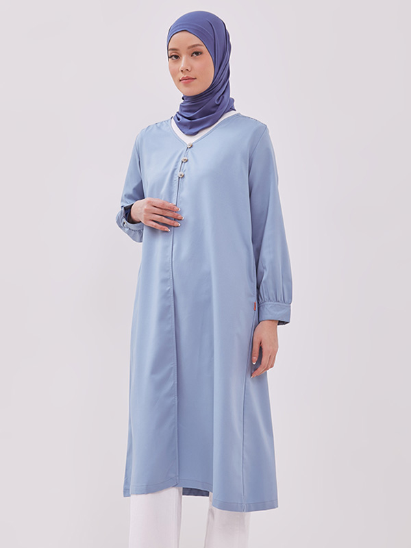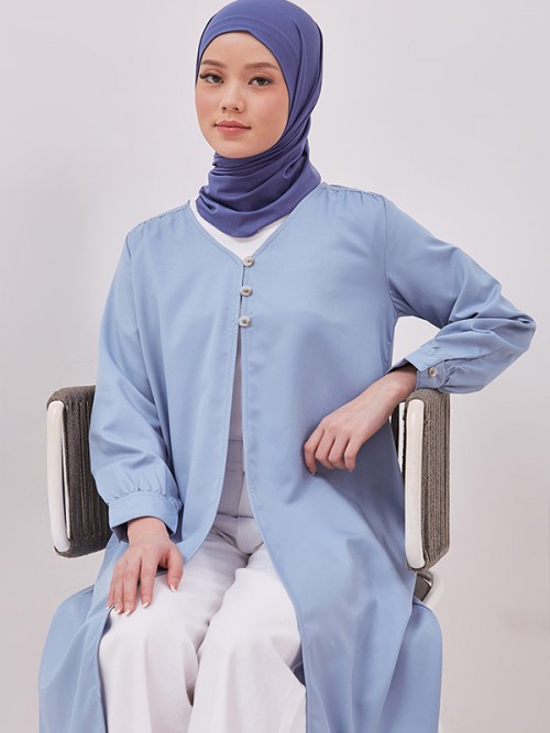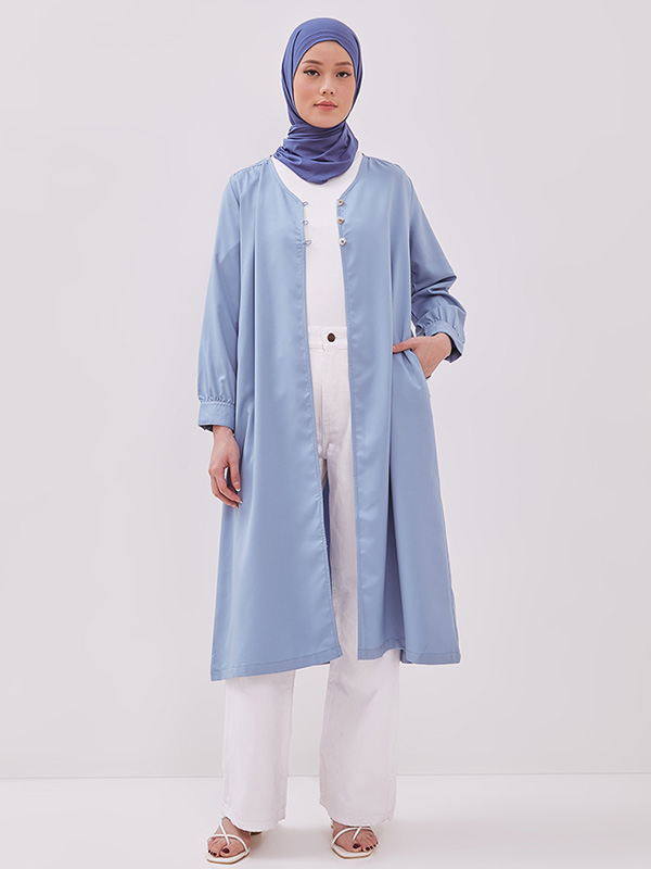 DUST Outer Jenaya Biru adalah outer panjang wanita memiliki karakteristik material yang nyaman dan lembut sehingga cocok digunakan untuk daily outfit.