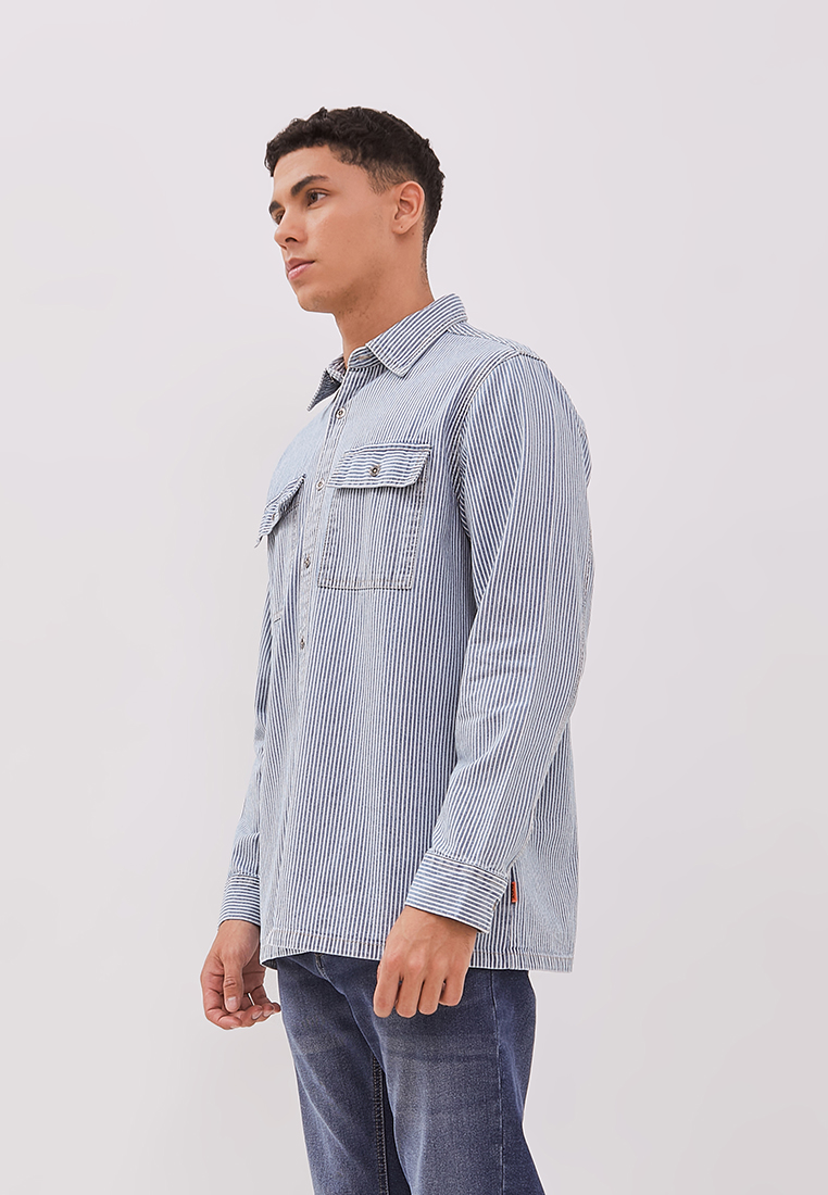 DUST Shirt Jacket Deren Biru adalah collection DUST MEN terbuat dari 100% Katun, terdapat kantong dibagian depan, reguler shirt jacket sehingga tetap terasa nyaman saat beraktivitas.