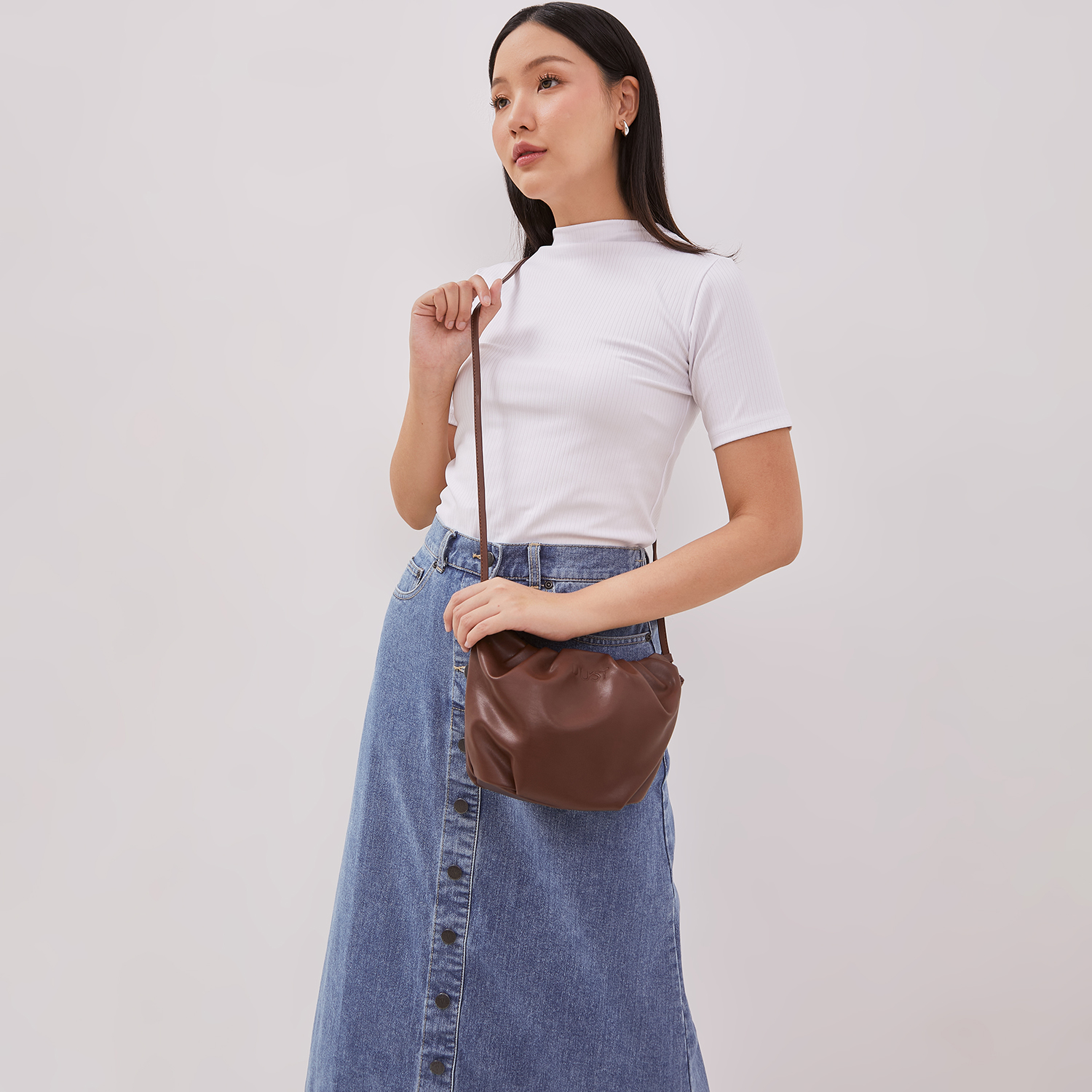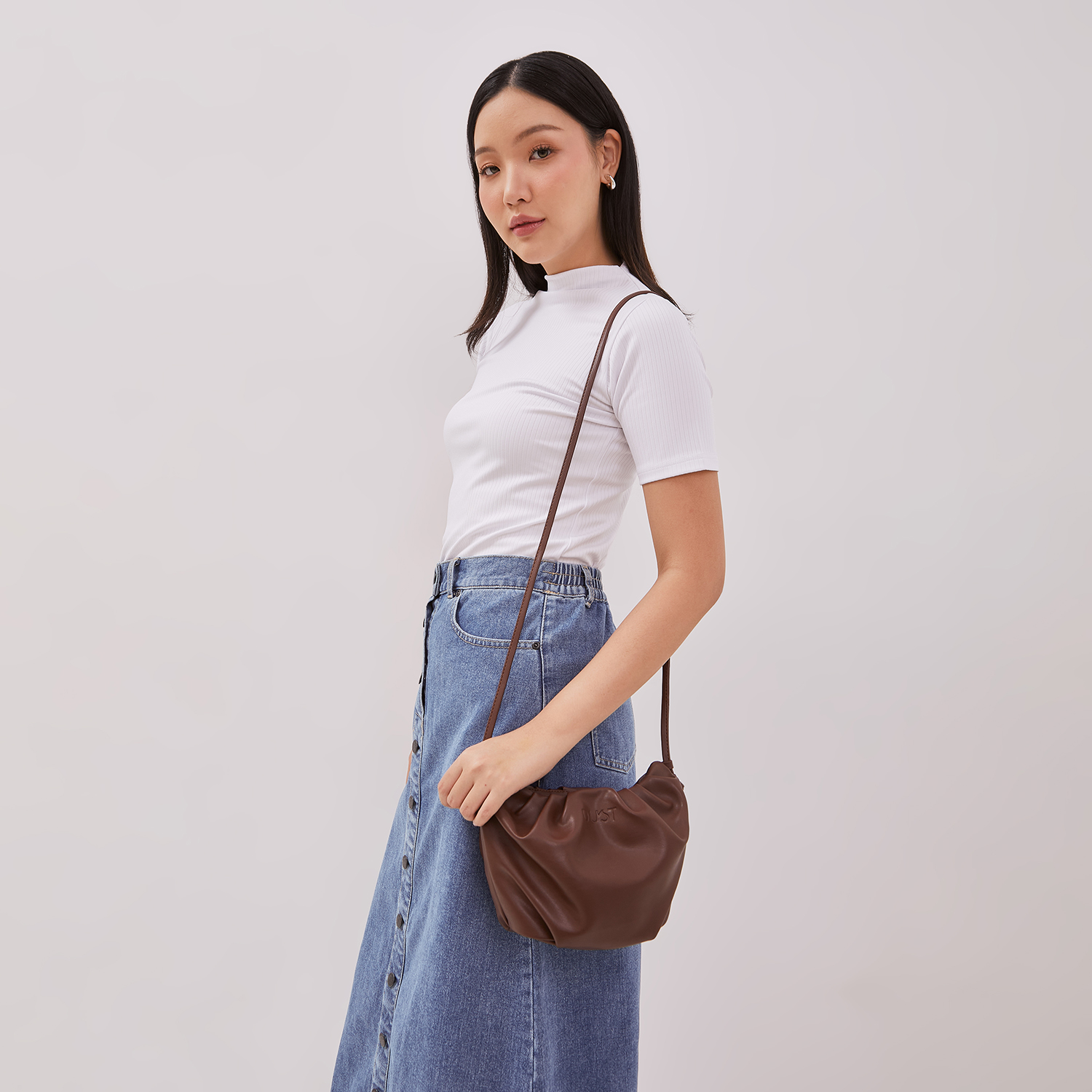 DUST Sienna Slingbag Coklat adalah slingbag bag wanita dengan detail resleting dan sablon dibagian depan.