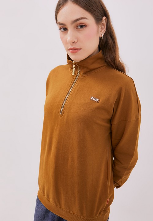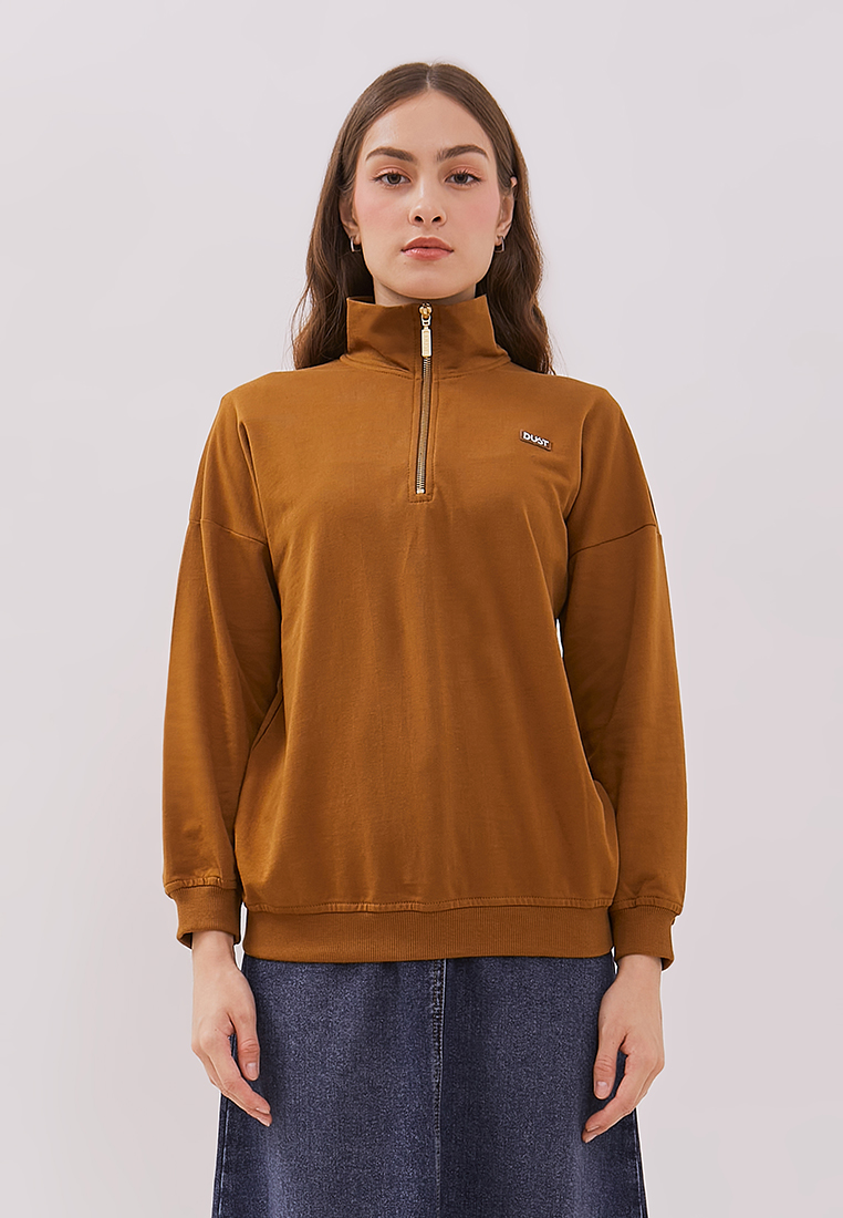 DUST Sweat Shirt Citta Coklat adalah sweatshirt unisex lengan panjang resleting depan warna colat dengan material yang nyaman dan lembut serta reguler fit