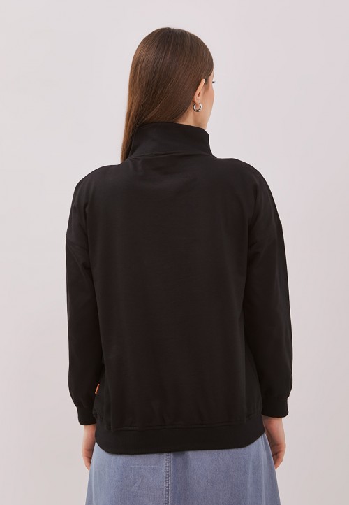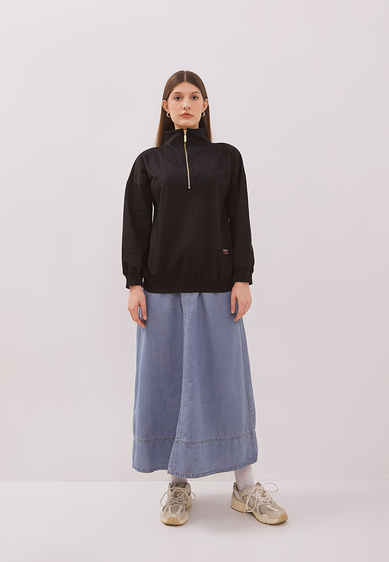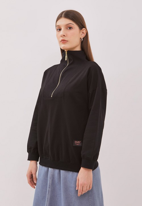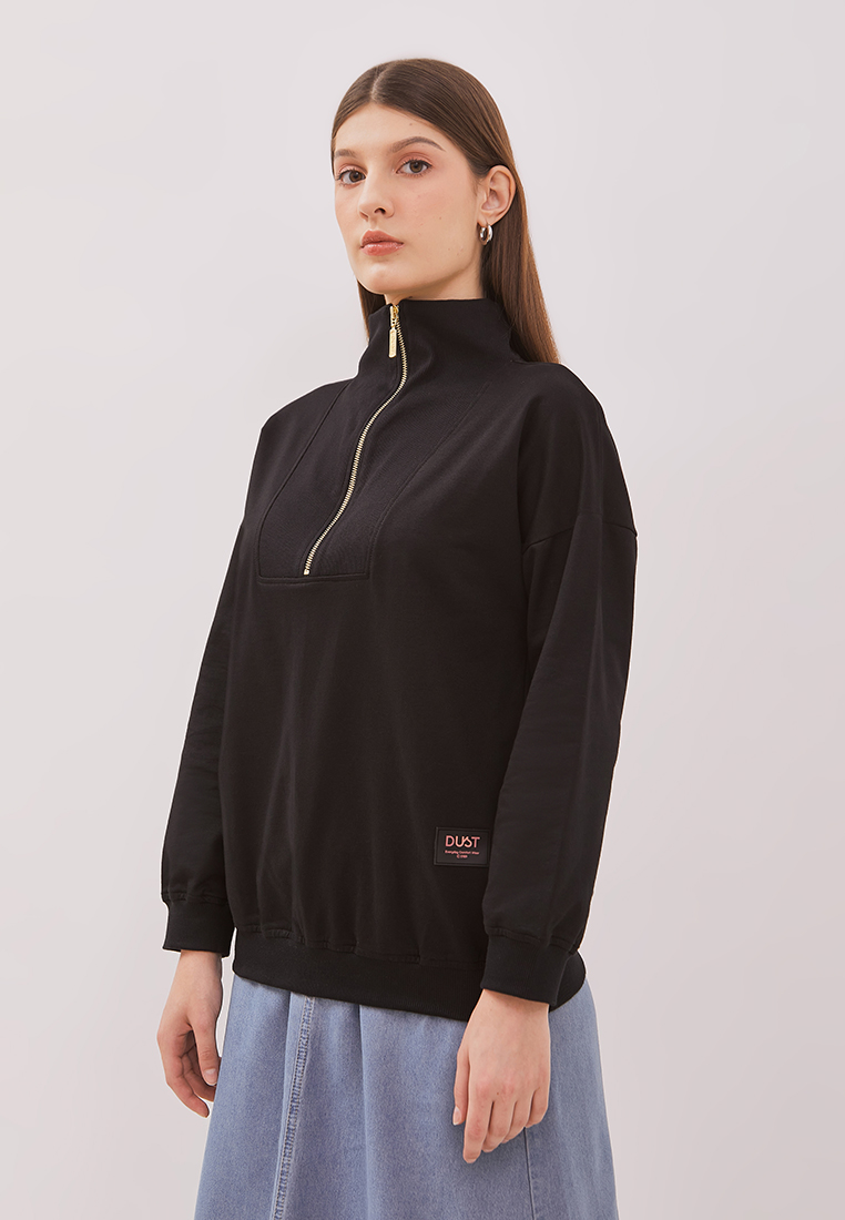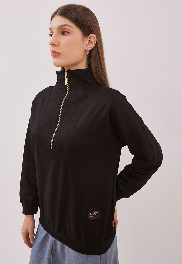 DUST Sweatshirt Biya Hitam adalah sweatshirt lengan panjang resleting depan warna hitam dengan material yang nyaman dan lembut serta reguler fit.